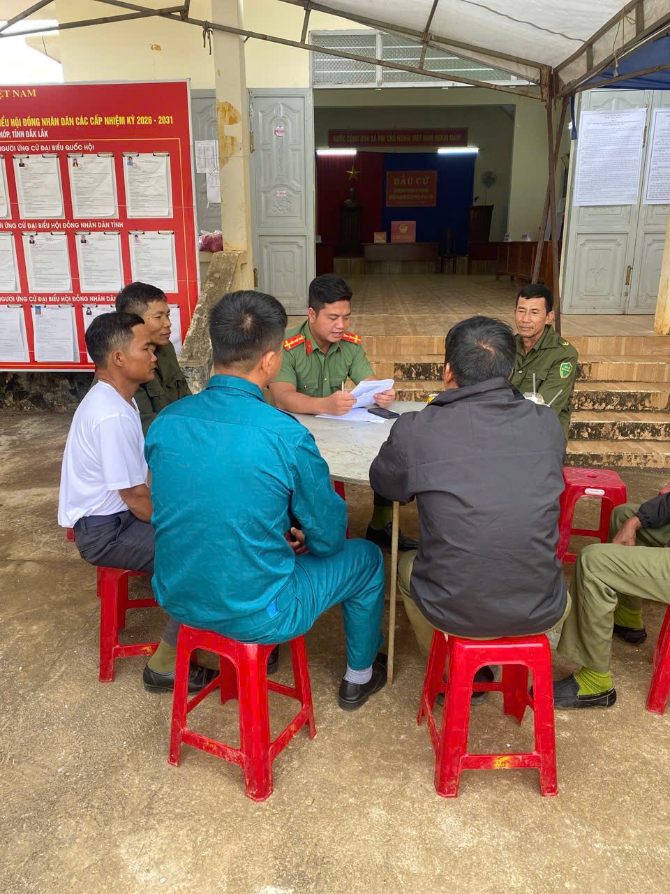 Sáng ngày 14/3/2026, Chỉ huy, cán bộ Công an xã Ea Knốp đã tổ chức họp và triển khai nhiệm vụ cụ thể, phân công lực lượng đảm bảo ANTT tại các khu vực bầu cử trên địa bàn xã (Toàn xã Ea Knốp có 10 đơn vị bầu cử đại biểu HĐND xã tương ứng với 20 tổ bầu cử tại các nhà văn hoá thôn, buôn). Công an xã đã huy động và bố trí 22 Tổ công tác tham gia thực hiện nhiệm vụ.