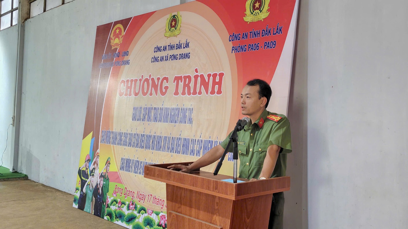 Tham dự chương trình có đồng chí Nguyễn Hải Đông – Tỉnh ủy viên, Bí thư Đảng ủy, Chủ tịch HĐND xã Pơng Drang; lãnh đạo Phòng Kỹ thuật nghiệp vụ và Phòng An ninh điều tra cùng hơn 50 cán bộ, chiến sĩ và tập thể Công an xã.