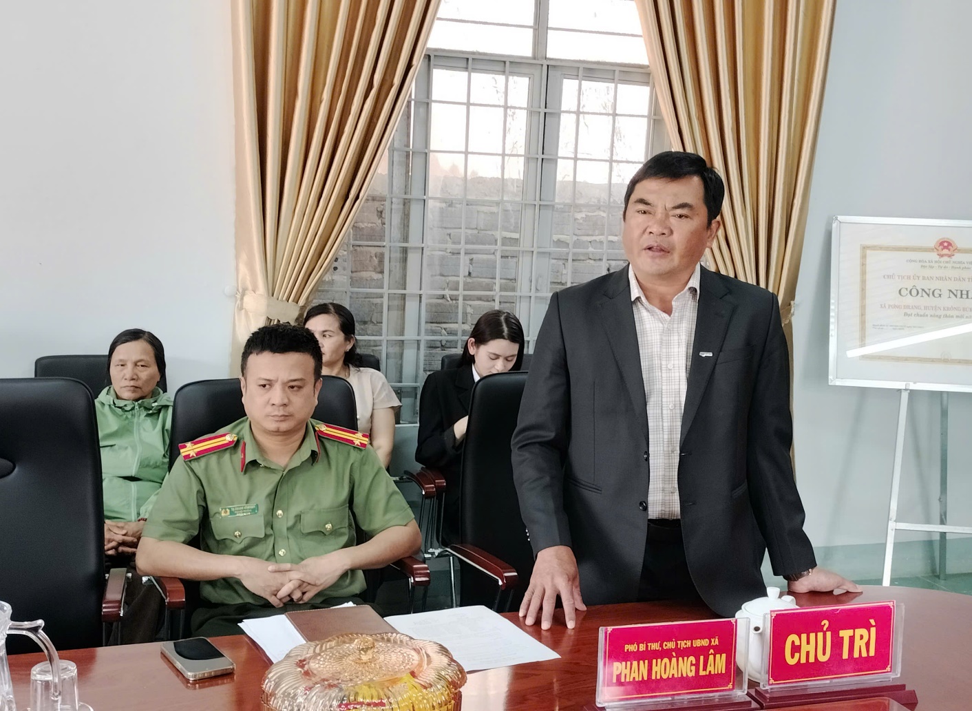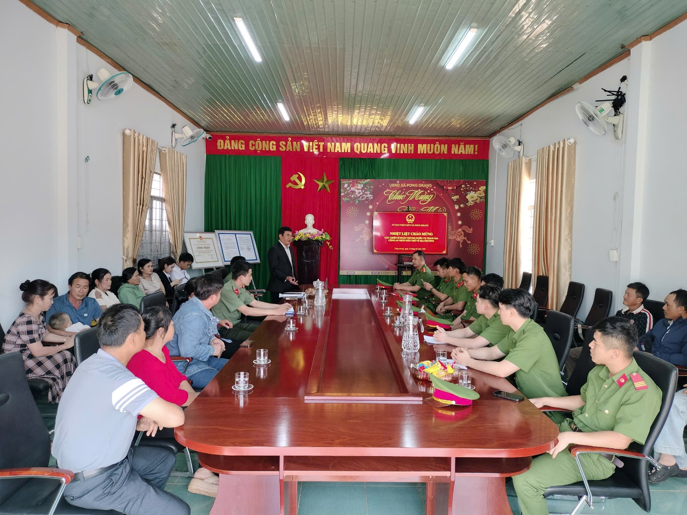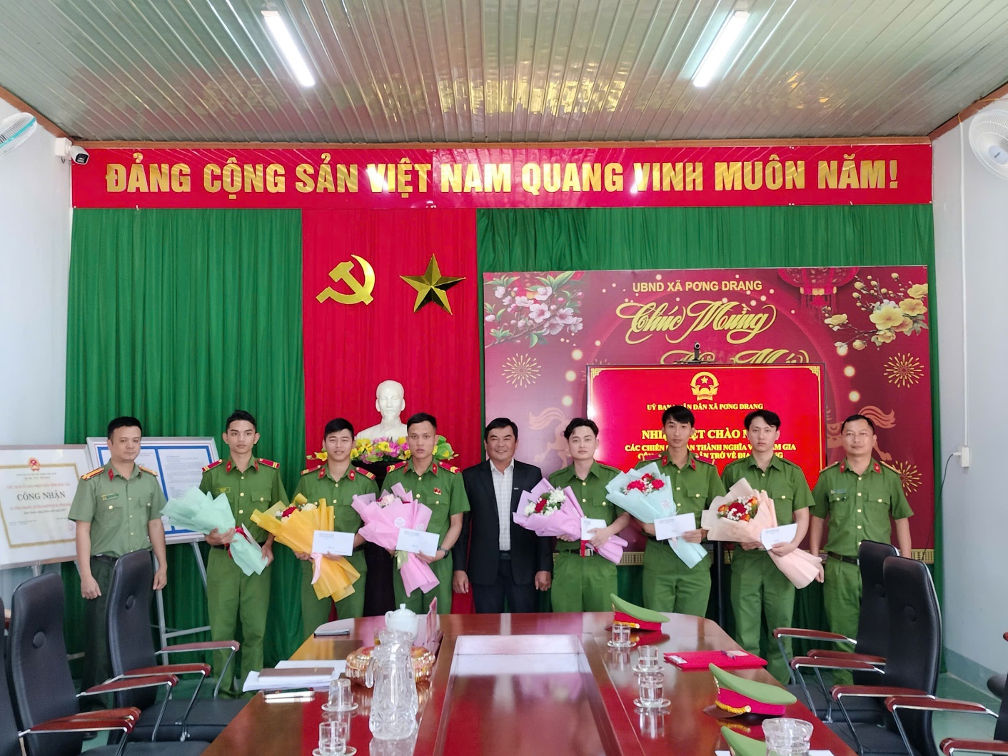 Tham dự chương trình có đồng chí Phan Hoàng Lâm – Phó Bí thư Đảng ủy, Chủ tịch UBND xã Pơng Drang; Trung tá Tạ Quang Vĩnh Duy – Phó Trưởng Công an xã Pơng Drang; cùng tham dự có 06 đồng chí chiến sĩ đã hoàn thành nghĩa vụ tham gia Công an nhân dân được trở về địa phương đợt này cùng thân nhân, gia đình.