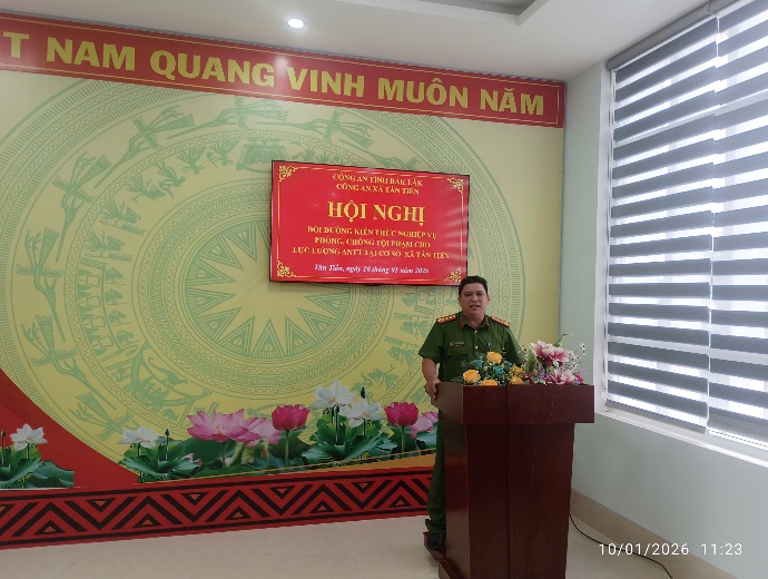 Ngày 10/01/2026, Công an xã Tân Tiến đã tổ chức Hội nghị bồi dưỡng kiến thức nghiệp vụ trong công tác phòng, chống tội phạm cho lực lượng tham gia bảo vệ an ninh, trật tự ở cơ sở. Tham dự Hội nghị có lãnh đạo, chỉ huy Công an xã Tân Tiến, toàn thể CBCS Công an xã và 100% lực lượng tham gia bảo vệ ANTT ở cơ sở trên địa bàn xã.