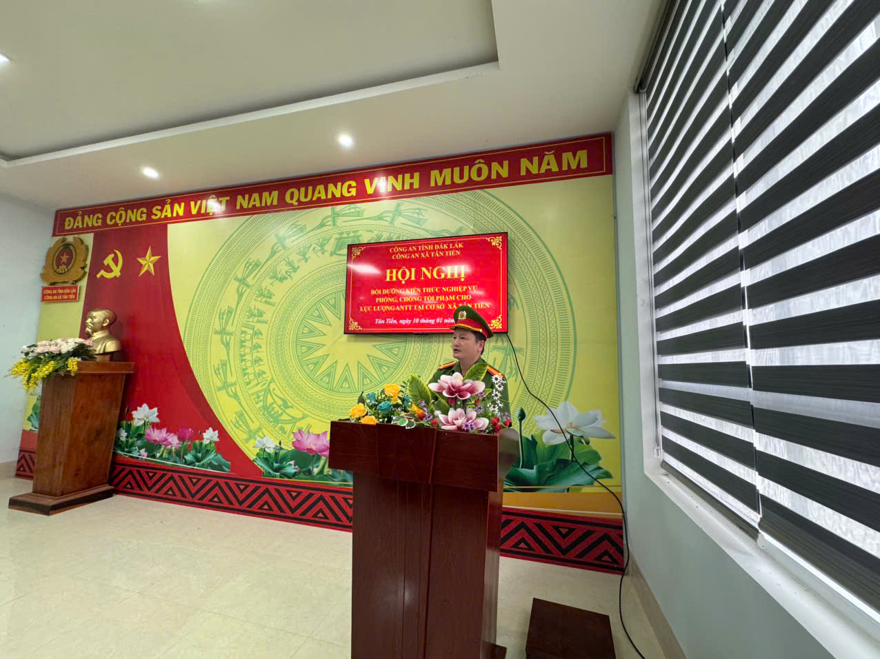 Để thực hiên, hoàn thành các nhiệm vụ trên, Công an xã Tân Tiến tổ chức bồi dưỡng cho lực lượng tham gia bảo vệ ANTT cơ sở kiến thức về chính trị, pháp luật, nghiệp vụ, rèn luyện đạo đức, tác phong, lối sống và năng lực về công tác để đáp ứng yêu cầu, nhiệm vụ được giao gồm các nội dung cơ bản, cốt lõi sau: