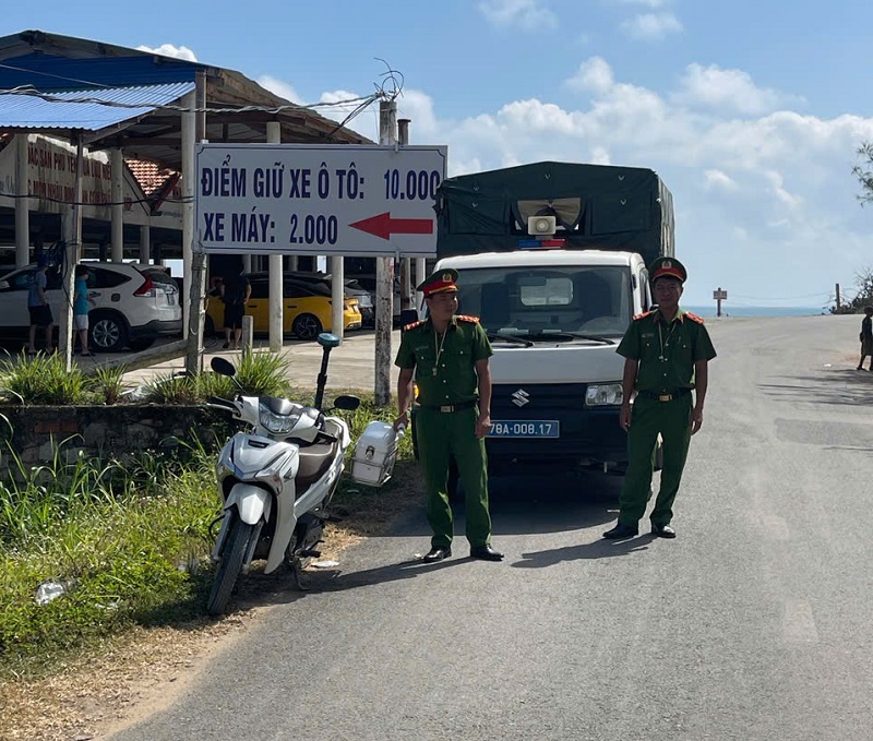Công an xã phân luồng, điều tiết giao thông tại khu Di tích thắng cảnh cấp Quốc gia Gành Đá Đĩa