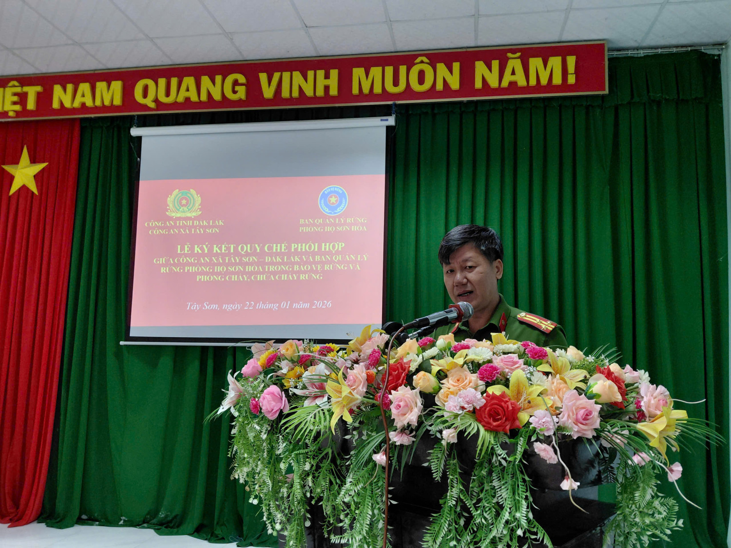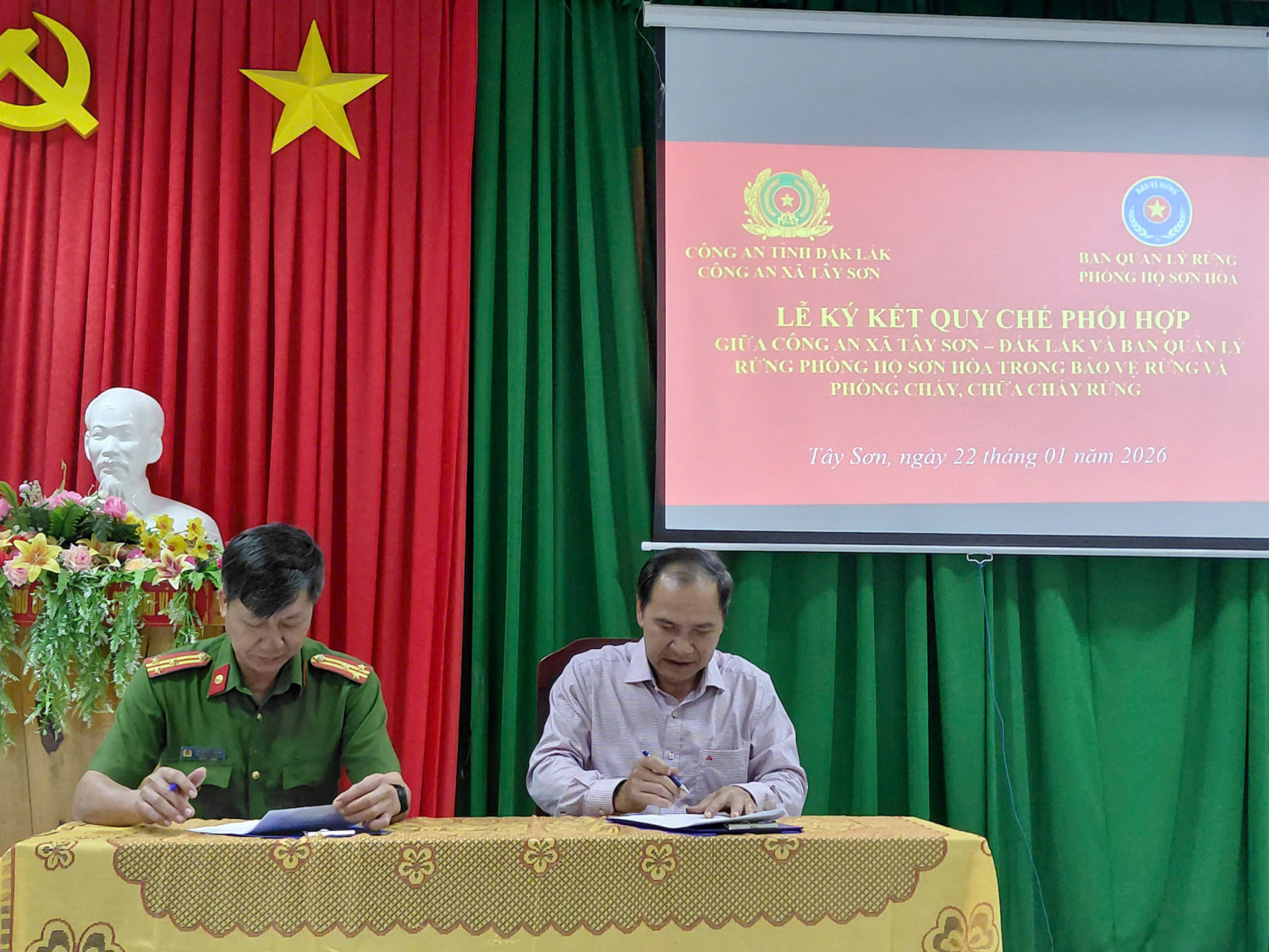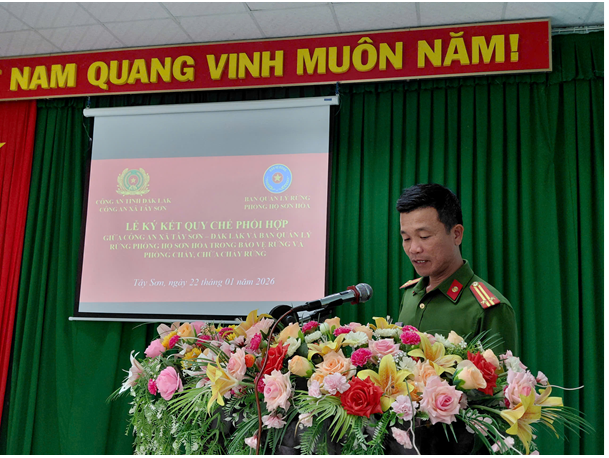 Ngày 22/01/2026, Công an xã Tây Sơn và Ban quản lý rừng phòng hộ Sơn Hòa ký kết Quy chế phối hợp trong bảo vệ rừng và phòng cháy chữa cháy rừng. Tham dự Lễ ký kết có đồng chí Thượng tá Chu Quốc Doanh – Trưởng Công an xã, đồng chí Nguyễn Văn Hân – Giám đốc Ban Quản lý rừng phòng hộ Sơn Hòa, cùng các đồng chí lãnh đạo Công an xã Tây Sơn, cán bộ của Công an xã Tây Sơn và cán bộ, nhân viên Đội chuyên trách bảo vệ rừng Sơn Hội và Đội chuyên trách bảo vệ rừng núi Hòn Ông, thuộc Ban quản lý rừng phòng hộ Sơn Hòa và Lãnh đạo Đảng ủy, UBND xã.