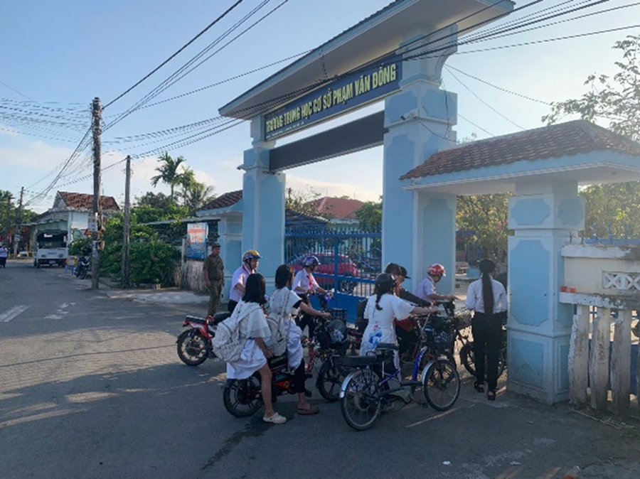Xuất phát từ thực tế vào các khung giờ cao điểm, tình trạng phụ huynh đưa đón học sinh và việc các em tụ tập trước cổng trường trên địa bàn xã Hòa Mỹ vẫn còn diễn ra, gây ùn tắc giao thông và tiềm ẩn nhiều nguy cơ mất an toàn, Công an xã Hòa Mỹ đã chủ động tham mưu cấp ủy, chính quyền địa phương triển khai và duy trì hiệu quả mô hình “Cổng trường an toàn giao thông” tại các trường học.