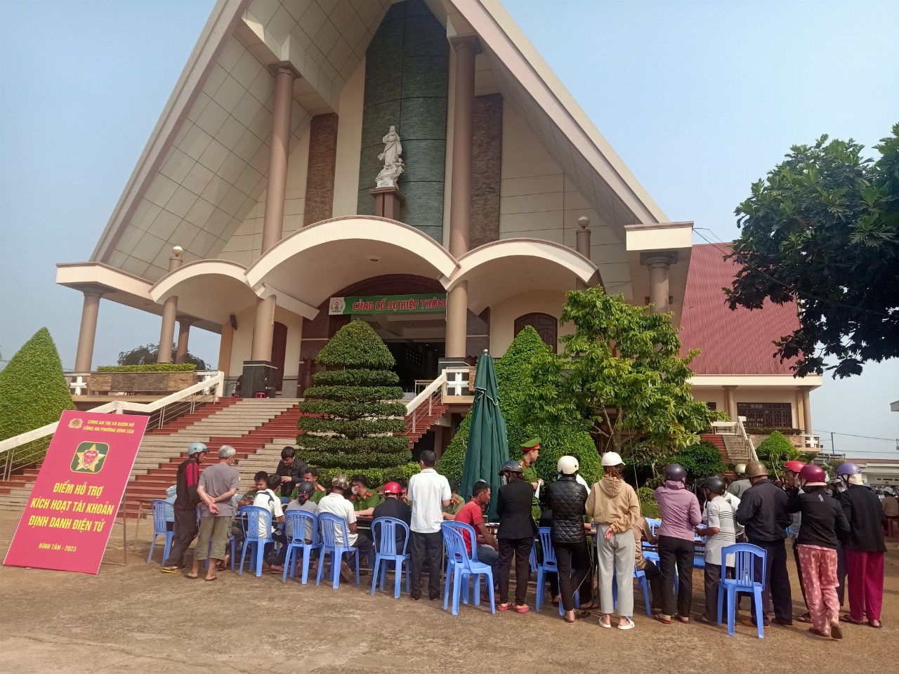 Công an phường phối hợp với Giáo xứ Vinh Quang thu nhận cấp Căn cước công dân và định danh điện tử cho người dân tại nhà thờ giáo xứ.