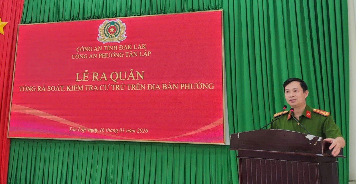Thực hiện Kế hoạch số 11/KH-CAT ngày 13/01/2026 của Công an tỉnh Đắk Lắk về tổng rà soát, kiểm tra cư trú trên địa bàn toàn tỉnh, vừa qua, Công an phường Tân Lập đã tổ chức Lễ ra quân Tổng rà soát, kiểm tra cư trú trên địa bàn phường, chính thức phát động đợt cao điểm kiểm tra cư trú với tinh thần quyết liệt, đồng bộ, toàn diện.