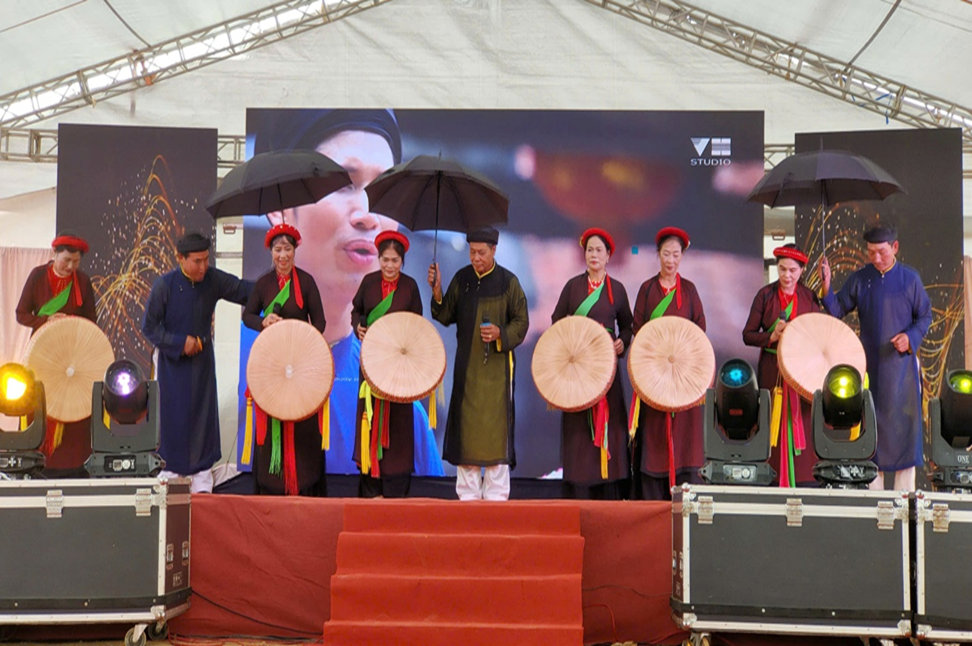 Quang cảnh các trò chơi dân gian được biểu diễn tại Ngày hội