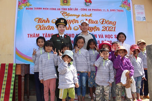 Theo đó, sáng ngày 16/01/2021, Đoàn Thanh niên Công an tỉnh phối hợp với công an phường 11 (Quận Bình Thạnh, TP. Hồ Chí Minh) và Đoàn cơ sở Công an các huyện Cư Kuin, Krông Bông phối hợp tổ chức chương trình Tình nguyện mùa Đông - Xuân tình nguyện” năm 2021.