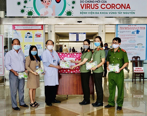 Đoàn công tác tặng khẩu trang cho đội ngũ y bác sĩ và các bệnh nhân tại Bệnh viện Đa khoa vùng Tây Nguyên (ngày 27/3/2020)
