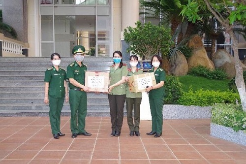 Hội phụ nữ Công an tỉnh phối hợp với Hội phụ nữ các đơn vị vũ trang tỉnh Đắk Lắk tặng khẩu trang cho các chiến sĩ Bộ đội Biên phòng ở tuyến đầu phòng, chống dịch (ngày 31/3/2020)
