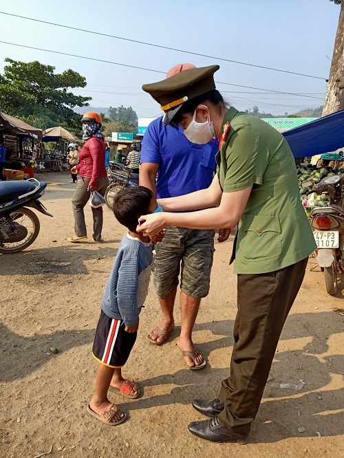 Hội phụ nữ Công an huyện Krông Bông hướng dẫn cách phòng, chống dịch cho người dân đến liên hệ công tác (ngày 25/3/2020)