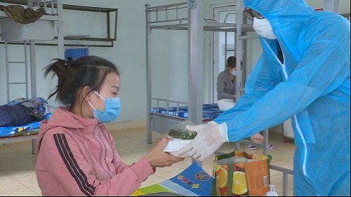 Hội viên Hội phụ nữ Phòng Hậu cần chăm lo các bữa ăn hàng ngày cho những trường hợp đang cách ly và cán bộ, nhân viên phục vụ tại khu cách ly