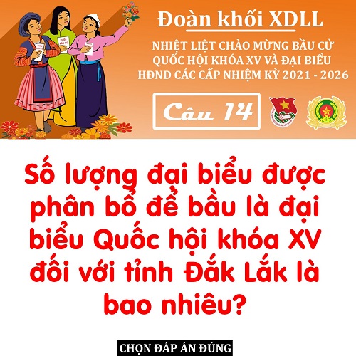 Trên cơ sở tài liệu Chuyên đề I về một số nội dung trọng tâm trong tuyên truyền về bầu cử đại biểu Quốc hội và bầu cử đại biểu HĐND các cấp nhiệm kỳ 2021 - 2026 tại Hội nghị báo cáo viên Tỉnh Đoàn Quý II/2021, Ban Tổ chức đã xây dựng 14 câu hỏi tự luận và trắc nghiệm. Các câu hỏi tập trung các nội dung trọng tâm như: Tiêu chuẩn đại biểu Quốc hội và đại biểu HĐND các cấp nhiệm kỳ 2021 - 2026; quy trình hiệp thương, đơn vị bầu cử ở tỉnh Đắk Lắk; các mốc thời gian bầu cử quan trọng…
