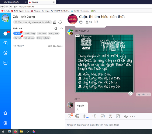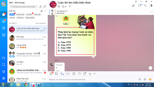 Hòa chung không khí thi đua lập thành tích, thiết thực chào mừng kỷ niệm 75 năm Ngày truyền thống lực lượng Công an nhân dân Việt Nam (19/8/1945 - 19/8/2020) và 15 năm Ngày hội toàn dân bảo vệ an ninh Tổ quốc (19/8/2005 - 19/8/2020), Chi đoàn Phòng Tham mưu đã tổ chức Cuộc thi tìm hiểu về lịch sử vẻ vang 75 năm xây dựng, chiến đấu và trưởng thành của CAND Việt Nam và 15 năm thực hiện Ngày hội toàn dân bảo vệ an ninh Tổ quốc. Trong đó, trước những diễn biến phức tạp của tình hình dịch bệnh Covid-19, thực hiện nghiêm túc các chỉ thị của Thủ tướng Chính phủ về các biện pháp cấp bách phòng, chống dịch và quy định về giãn cách xã hội của UBND tỉnh, Chi đoàn Phòng Tham mưu đã linh hoạt, sáng tạo, chủ động báo cáo Đảng ủy, lãnh đạo Phòng Tham mưu và tổ chức Cuộc thi trực tuyến tìm hiểu kiến thức trên nền tảng mạng xã hội Zalo. Qua đó, Cuộc thi vừa tạo sân chơi bổ ích, giáo dục chính trị - tư tưởng, lịch sử truyền thống của lực lượng Công an nhân dân cho đoàn viên thanh niên vừa bảo đảm an toàn trong phòng, chống dịch Covid-19.