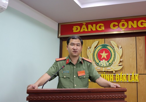 Đồng chí Thượng úy Nguyễn Thanh Thủy – Phó Bí thư Đoàn Thanh niên Công an tỉnh phát biểu chỉ đạo tại Đại hội