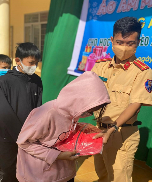 Hình ảnh hoạt động của Đoàn thanh niên Công an huyện và đơn vị tài trợ tại Chương trình "Áo ấm mùa Đông"
