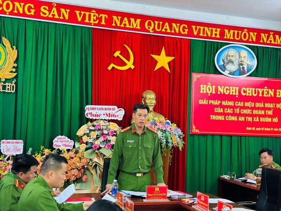 Nhằm nâng cao hiệu quả trong hoạt động, đồng thời khắc phục những khó khăn, hạn chế trong hoạt động của các Đoàn thể, ngày 02/01/2024, Công an thị xã đã tổ chức Hội nghị chuyên đề “Giải pháp nâng cao hiệu quả hoạt động của các tổ chức Đoàn thể trong Công an thị xã Buôn Hồ”. Đồng chí Thượng tá Nguyễn Danh Bằng – Bí thư Đảng ủy, Trưởng Công an thị xã chủ trì Hội nghị; tham dự Hội nghị còn có các đồng chí lãnh đạo, Đảng ủy viên, Ban chấp hành Đoàn Thanh niên, Công Đoàn, Hội Phụ nữ Công an thị xã.