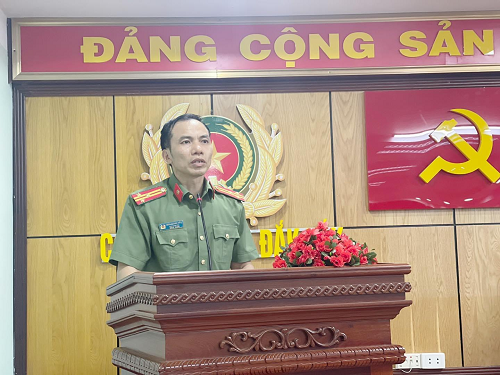 Đồng chí Thượng tá Trần Quang Hiếu - Ủy viên Ban Thường vụ Đảng ủy, Phó Giám đốc Công an tỉnh phát biểu chỉ đạo