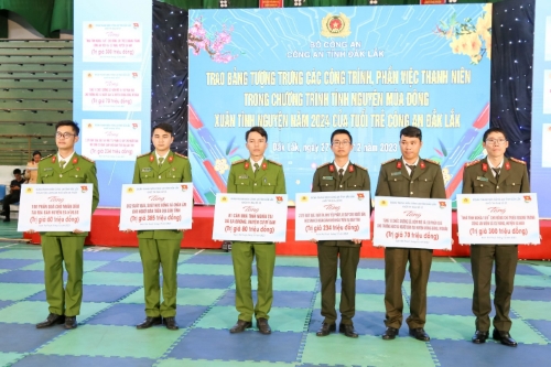 Cũng tại buổi Lễ, Khối thi đua, tổ chức cơ sở Đoàn và Đoàn thanh niên Công an thành phố Buôn Ma Thuột đã trao tặng bảng tượng trưng các công trình phần việc thanh niên trong Chương trình “Tình nguyện mùa đông - Xuân tình nguyện” với tổng giá trị 1 tỷ 119 triệu đồng cho các đơn vị.