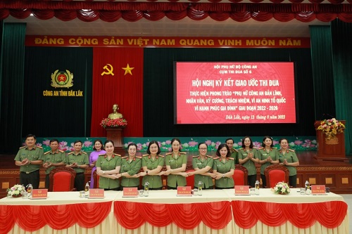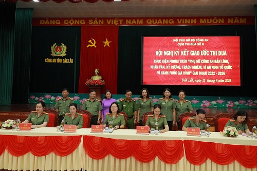 Thực hiện chỉ đạo của Bộ Công an về thực hiện phong trào thi đua “Phụ nữ Công an bản lĩnh, nhân văn, kỷ cương, trách nhiệm vì An ninh Tổ quốc, vì hạnh phúc gia đình” giai đoạn 2022 - 2026, Hội phụ nữ Công an các tỉnh Đắk Lắk, Đắk Nông, Kon Tum, Lâm Đồng, Bình Phước, Gia Lai đã tổ chức Hội nghị ký kết giao ước thi đua, trong đó Hội Phụ nữ Công an tỉnh Đắk Lắk được Hội Phụ nữ Bộ Công an lựa chọn là đơn vị Cụm trưởng Cụm thi đua số 6, giao nhiệm vụ chủ trì, thường trực tham mưu triển khai thực hiện phong trào thi đua của phụ nữ Công an trong toàn Cụm thi đua.