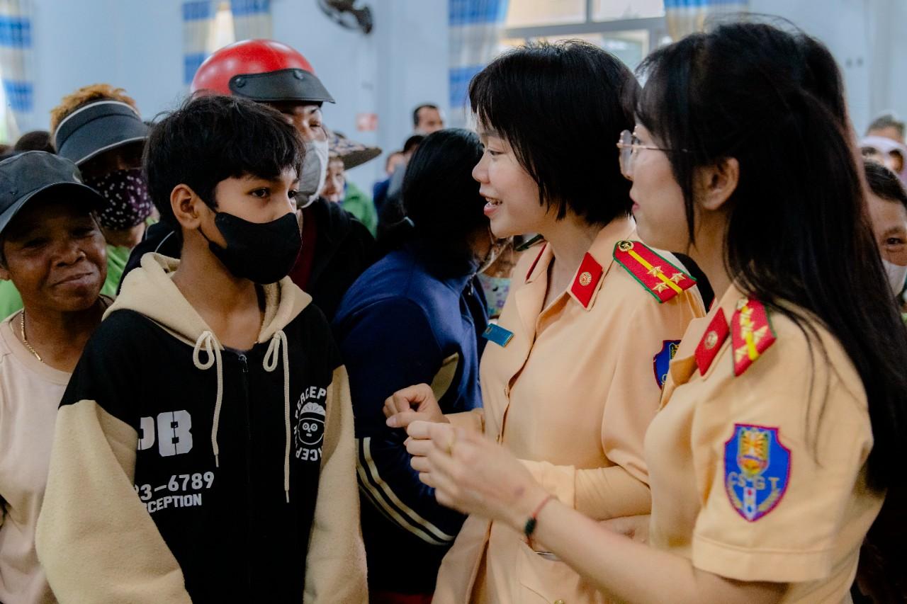 Cán bộ, chiến sỹ Phòng Cảnh sát giao thông Công an tỉnh cùng Ban Tổ chức chương trình trao tặng quà cho Nhân dân có hoàn cảnh khó khăn