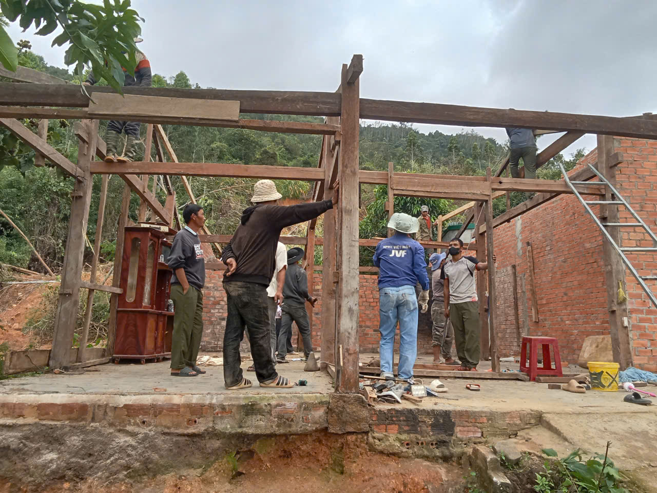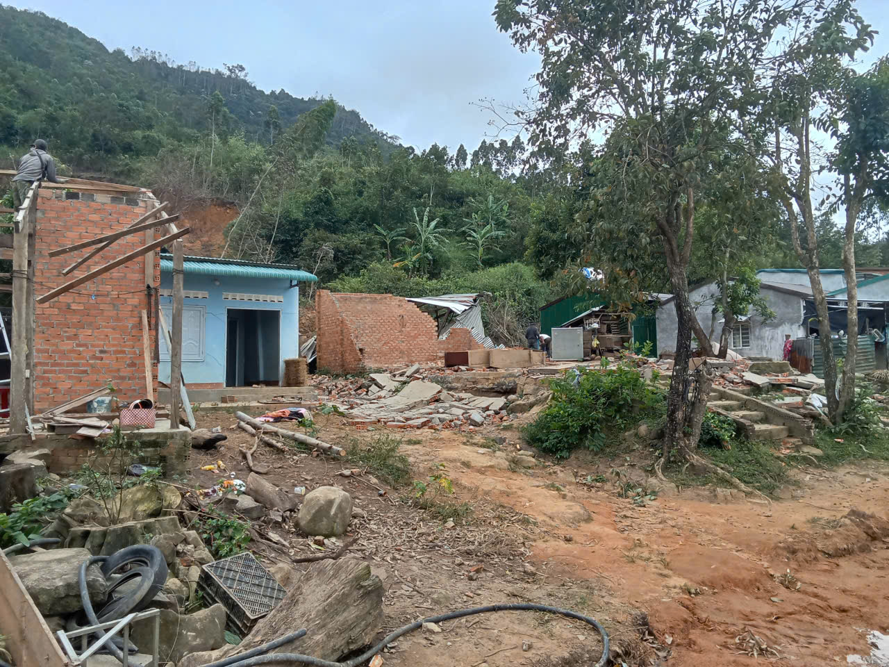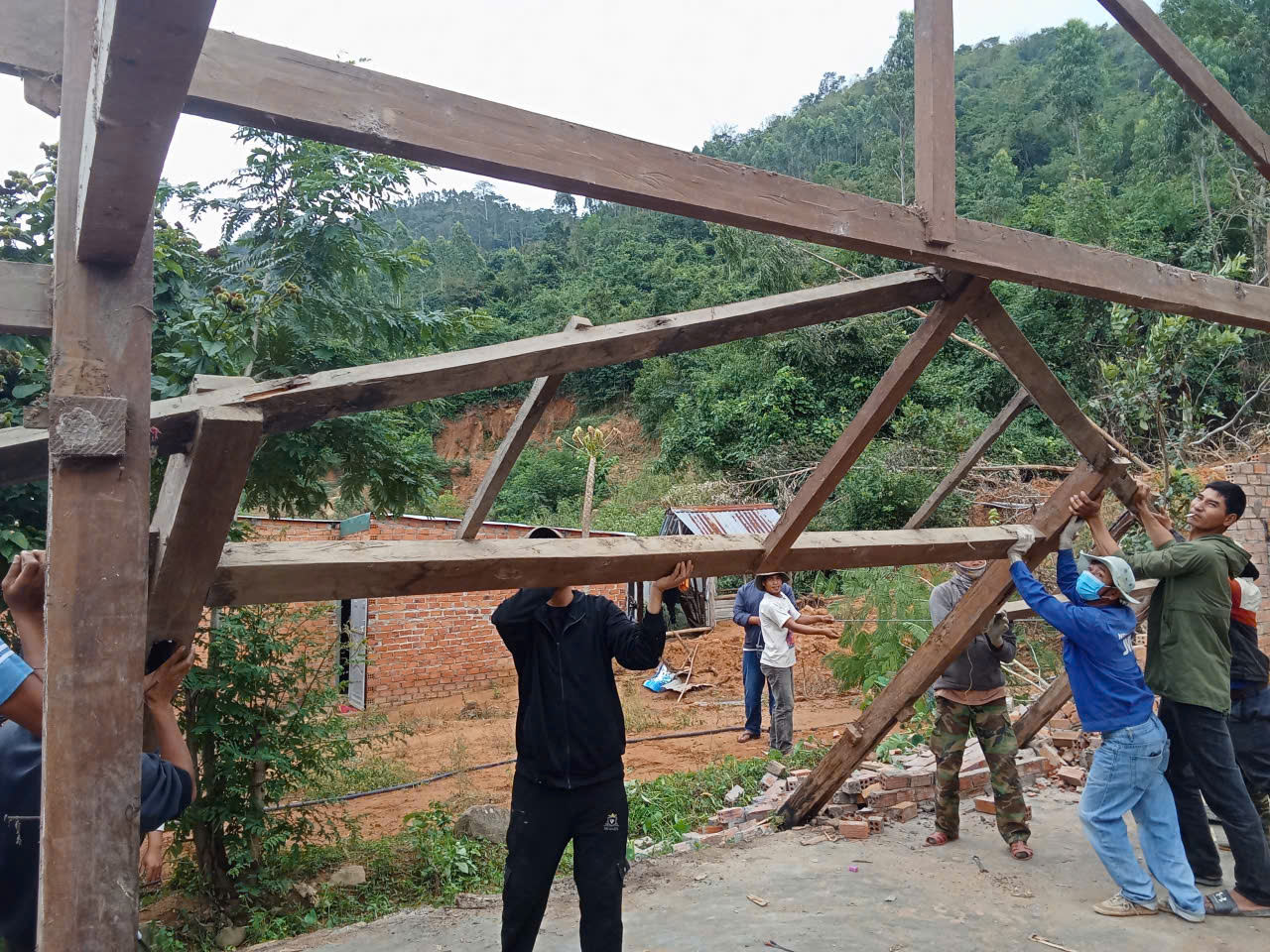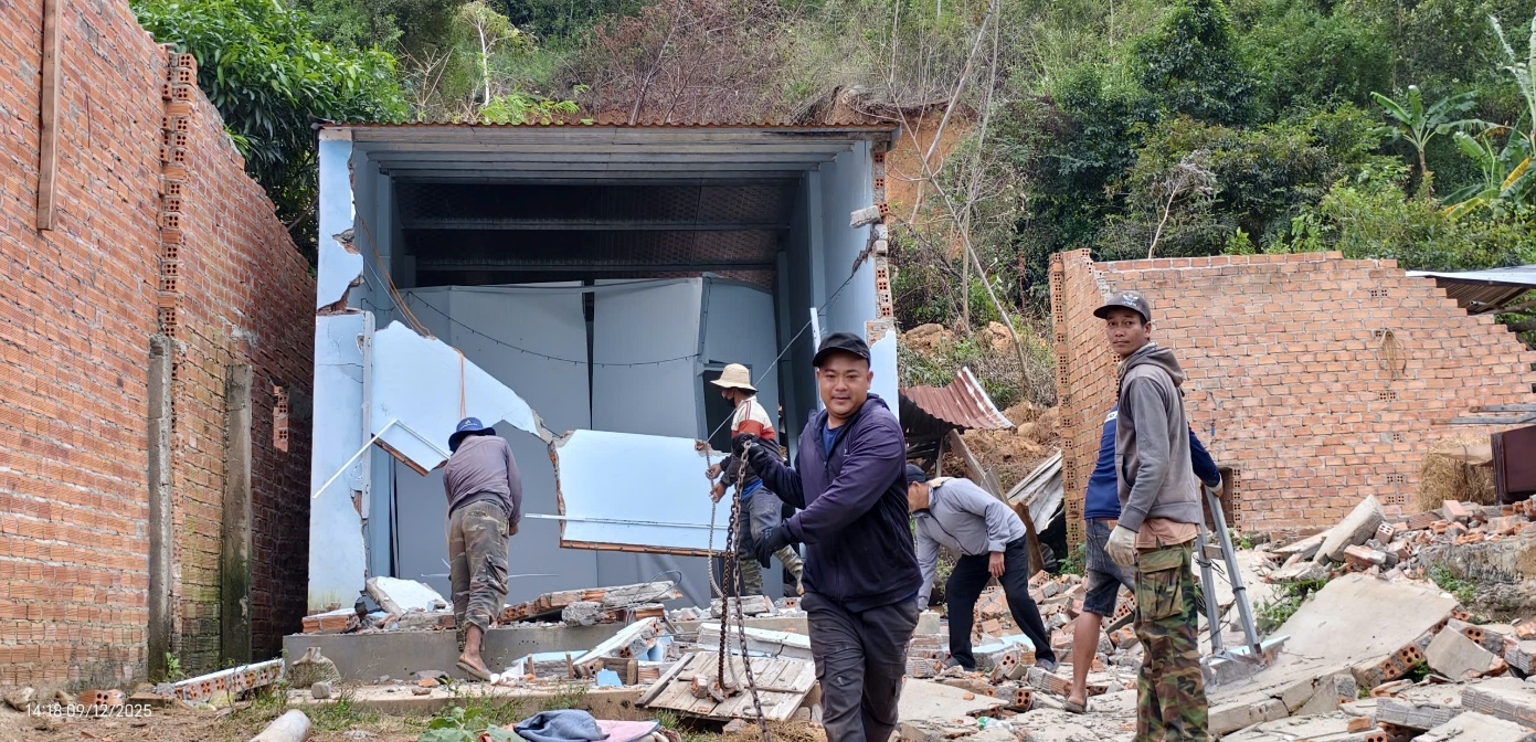 Trước tình hình đó Đảng ủy, UBND xã đã tổ chức làm việc với các hộ gia đình bị sập, đổ nhà ở hoặc hư hỏng nặng không thể sửa chữa về phương án bố trí đất xây dựng lại nhà ở đối với 04 hộ dân trên, đồng thời giao trực tiếp lực lượng Công an xã khảo sát địa điểm xây dựng mới, phương án đảm bảo an toàn cho các hộ dân. Qua đó, Công an xã đã huy động cán bộ, chiến sĩ cùng lực lượng lực lượng ANTT ở cơ sở tổ chức giúp đỡ 04 hộ dân có nhà bị hư hỏng. Các hoạt động hỗ trợ bao gồm: tháo dỡ phần nhà bị sập, vận chuyển vật liệu, dựng lại khung nhà, lợp mái mới và dọn dẹp hiện trường sau thiên tai.
