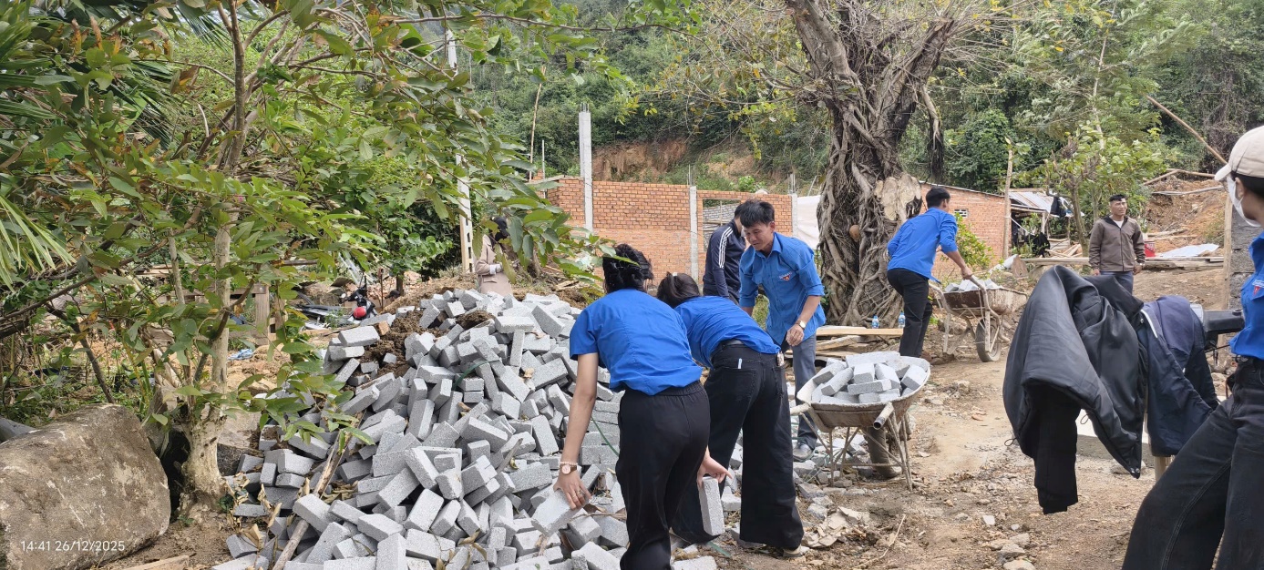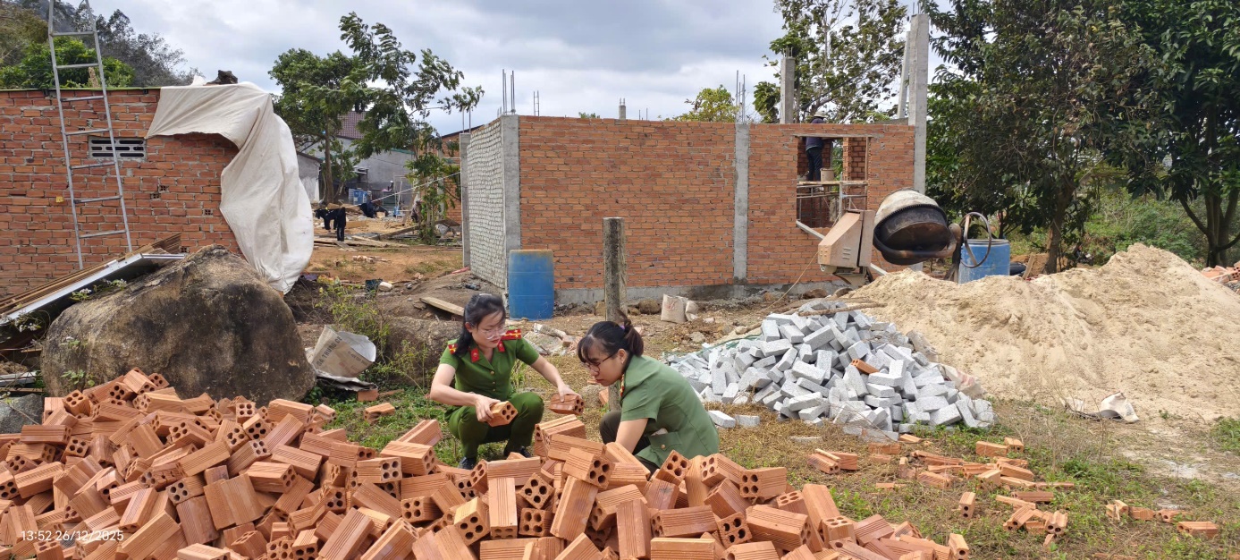 (Một số hình ảnh lực lượng Công an phối hợp với đoàn thành niên xã hỗ trợ xây dựng nhà)