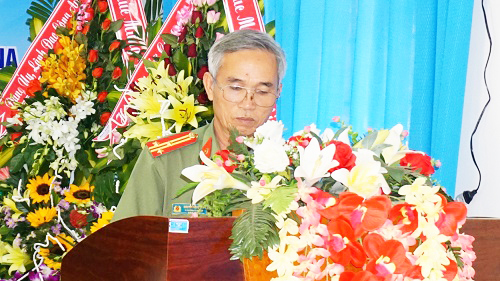 Đ/c Thượng tá Nguyễn Ngọc Lâm - Phó trưởng Công an huyện phát biểu tại Đại hội