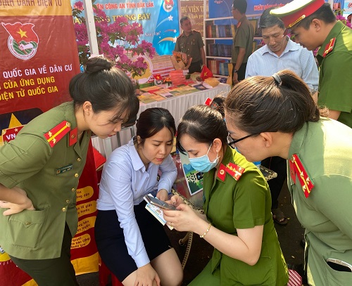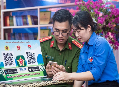 Tại gian hàng triển lãm, trưng bày sách, Đoàn Thanh niên Công an tỉnh phối hợp Công an TP. Buôn Ma Thuột lồng ghép thành lập điểm tuyên truyền, hướng dẫn người dân cài đặt, kích hoạt tài khoản định danh điện tử và sử dụng ứng dụng VNeID đối với Nhân dân và du khách đến tham quan. Trong 03 ngày diễn ra hoạt động, đã có hơn 250 người dân, du khách tham quan được hướng dẫn cài đặt, kích hoạt tài khoản định danh điện tử mức độ 1, 2 và được tặng các phần nước miễn phí sau khi được cài đặt, kích hoạt thành công.
