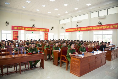 Đồng chí Đại úy Nguyễn Văn Long – Phó Trưởng Phòng Cảnh sát phòng cháy chữa cháy và cứu nạn cứu hộ đã biểu dương tinh thần xung kích, tình nguyện của tuổi trẻ Công an tỉnh