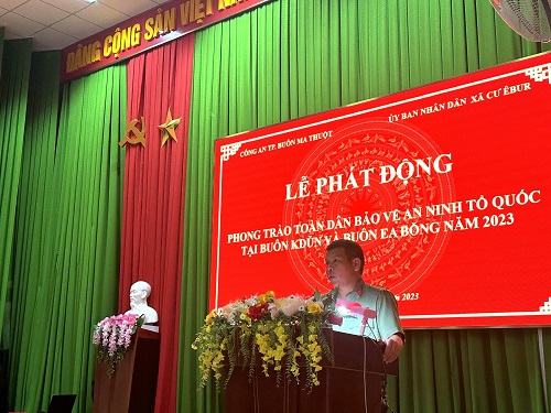 Ngày 22/9/2023, Công an thành phố Buôn Ma Thuột phối hợp cùng Đảng ủy, UBND xã, Công an xã Cư Êbur tổ chức phát động phong trào toàn dân bảo vệ an ninh Tổ quốc tại buôn KDun và buôn Ea Bông, xã Cư Êbur, thành phố Buôn Ma Thuột.