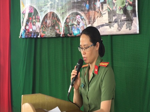 Đ/c Thiếu tá Nguyễn Thị Thu - Chủ tịch Hội phụ nữ Công an tỉnh Đắk Lắk phát biểu tại chương trình
