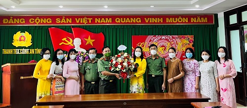 Nhân Kỷ niệm 112 năm Ngày Quốc tế phụ nữ (8/3/1910-8/3/2022), lãnh đạo Phòng Thanh tra Công an tỉnh đã tổ chức gặp mặt cán bộ, chiến sỹ nữ trong đơn vị để động viên, tặng hoa chúc mừng.