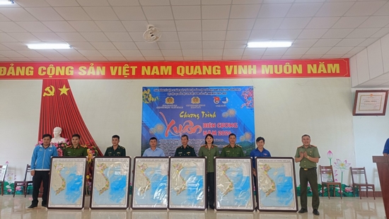 Tặng bản đồ Việt Nam cho các đơn vị đóng quân trên địa bàn xã Ea Bung.