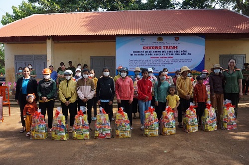 Tại chương trình, Đoàn đã tổ chức thăm, tặng 152 suất quà cho các hộ gia đình chính sách, có hoàn cảnh khó khăn; tổ chức khám chữa bệnh, cấp phát thuốc miễn phí cho hơn 300 người dân buôn Lang, buôn Sút và buôn Ea Mắp, thị trấn Ea Pôk. Ngoài ra, Đoàn công tác đã lồng ghép tuyên truyền hướng dẫn khoảng 200 người dân cài đặt, kích hoạt tài khoản định danh điện tử và sử dụng ứng dụng VNeID và tổ chức, hướng dẫn người dân dọn dẹp vệ sinh trong Buôn. Tổng kinh phí hoạt động chương trình là 90 triệu đồng.