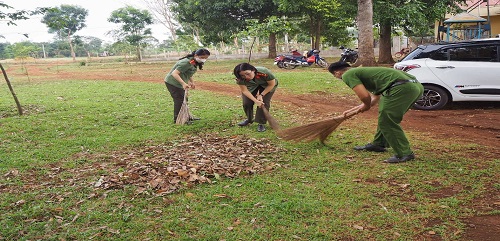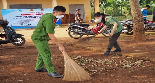 Đoàn viên thanh niên, Hội viên Công an huyện Cư M’gar tham gia dọn dẹp vệ sinh