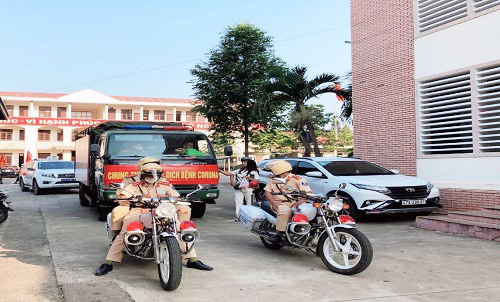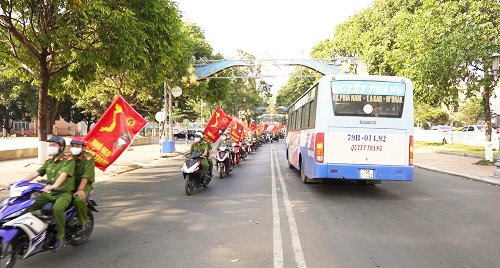 Đoàn thanh niên Công an thành phố và Phòng An ninh chính trị nội bộ phối hợp tham gia diễu hành tuyên truyền phòng chống dịch Covid-19
