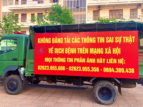 Thông qua băng rôn, panô, áp phích, loa phát thanh,… để tuyên truyền các nội dung, kiến thức cơ bản, biện pháp cần thiết để phòng, chống dịch bệnh như: “Chung tay đẩy lùi dịch bệnh Corona”; “Không tụ tập đông người, thường xuyên đeo khẩu trang khi tiếp xúc với người khác”; “Khai báo y tế đầy đủ khi đi từ vùng có dịch trở về”; “Không đăng tải thông tin sai sự thật về dịch bệnh trên mạng xã hội”,…