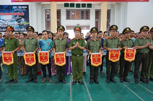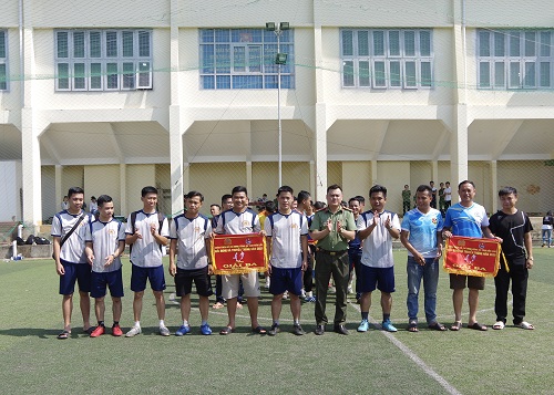 Lãnh đạo Công an tỉnh trao cờ lưu niệm cho các đội tuyển