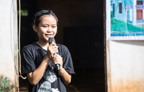 Thay mặt gia đình, bé H.N xúc động gửi lời cảm ơn đến các cô, chú, anh, chị đã quan tâm đến các em, giúp các em được sửa chữa nhà ở để yên tâm học hành.