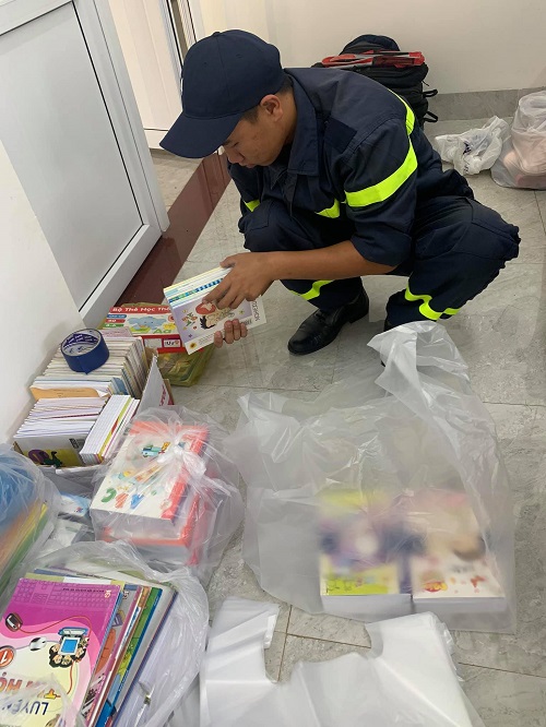 Hình ảnh các hoạt động vận động quyên góp và phân loại dụng cụ học tập của Đoàn Thanh niên Công an tỉnh Đắk Lắk
