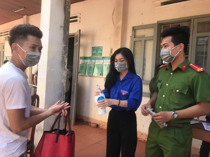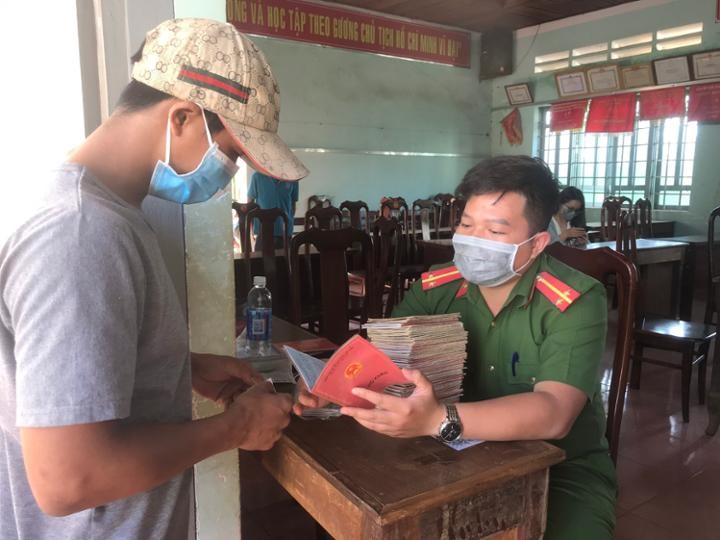 Bên cạnh đó, để thực hiện tốt công tác phòng, chống dịch Covid-19 tại điểm cấp CCCD trên địa bàn huyện, đoàn viên thanh niên Công an huyện đã treo áp phích phòng, chống dịch Covid-19, phát hàng ngàn khẩu trang và dung dịch rửa tay sát khuẩn cho người dân tới làm CCCD.