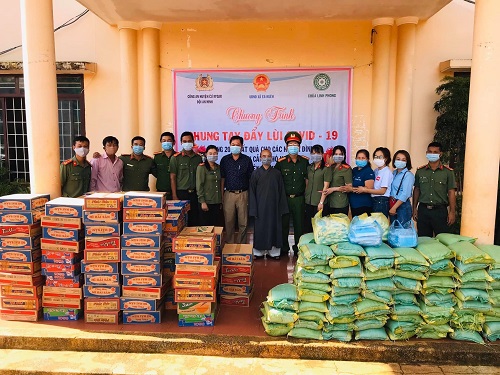 Đoàn Đoàn Thanh niên Công an tỉnh tặng nhu yếu phẩm cho Nhân dân bị ảnh hưởng dịch Covid-19