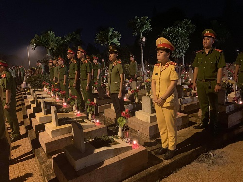 Đoàn Thanh niên Công an tỉnh dâng hương, dâng hoa tại Nghĩa trang liệt sỹ tỉnh