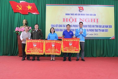 Đoàn Đoàn Thanh niên Công an tỉnh nhận Cờ đơn vị xuất sắc Công tác Đoàn và phong trào thành niên tỉnh Đắk Lắk năm 2020