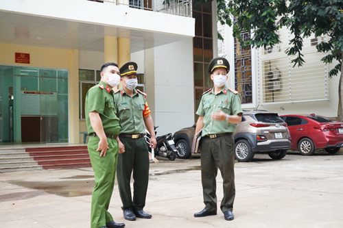 Đồng chí Đại úy Lê Ngọc Thắng – Phó Bí thư Đoàn Thanh niên cùng đại diện Tổ Điều lệnh Công an tỉnh kiểm tra thực hiện phần việc thanh niên tại các Khối thi đua, Đoàn Thanh niên Công an tỉnh