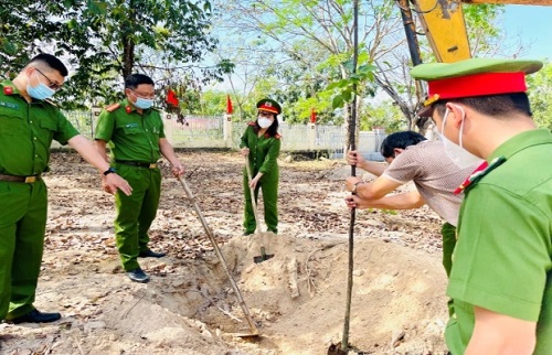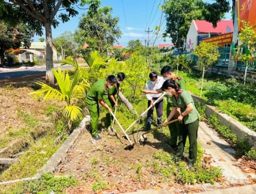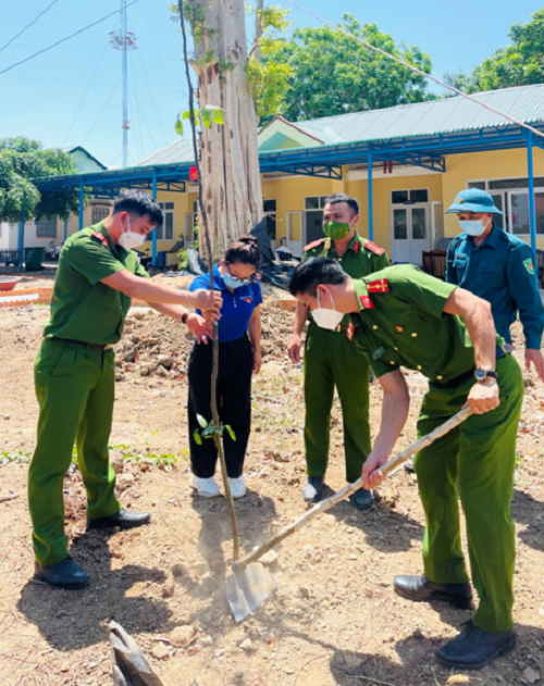 Trồng cây xanh tại khuôn viên trụ sở Công an xã