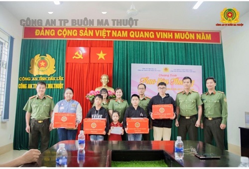 Tại chương trình, Ban Tổ chức đã trao tặng các phần quà cho 05 trường hợp là con CBCS công tác tại Công an thành phố Buôn Ma thuột có hoàn cảnh khó khăn và 05 hộ gia đình thương binh, liệt sĩ có hoàn cảnh khó khăn tại thôn Kiên Cường, xã Hòa Thuận, Tp. Buôn Ma Thuột.