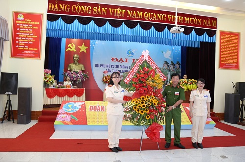 Phát biểu chúc mừng Đại hội, đồng chí Đại tá Nghiêm Thanh Thủy - Trưởng phòng phòng Quản lý xuất, nhập cảnh; đồng chí Thiếu tá Nguyễn Thị Thu - Chủ tịch Hội Phụ nữ Công an tỉnh đã biểu dương, ghi nhận những thành tích Hội Phụ nữ cơ sở phòng Quản lý xuất, nhập cảnh đạt được trong nhiệm kỳ qua. Đồng thời đề nghị Hội Phụ nữ cơ sở trong thời gian tới tiếp tục nghiên cứu, đẩy mạnh việc đổi mới nội dung, hình thức hoạt động; xây dựng, cụ thể hóa việc triển khai thực hiện các phong trào thi đua gắn và bám sát nhiệm vụ chính trị của đơn vị, phát huy tinh thần “Đoàn kết, sáng tạo, phát triển, vì Nhân dân phục vụ”, thực hiện thắng lợi các mục tiêu, chỉ tiêu, nhiệm vụ mà Nghị quyết Đại hội đã đề ra.