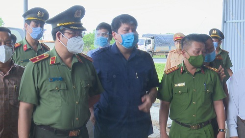 Đồng chí Đại tá Phạm Tiến Triệu - Phó giám đốc Công an tỉnh kiểm tra, thăm tặng quà động viên các lực lượng ở những chốt phòng, chống dịch Covid-19